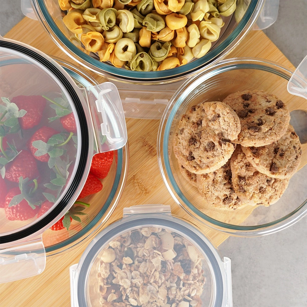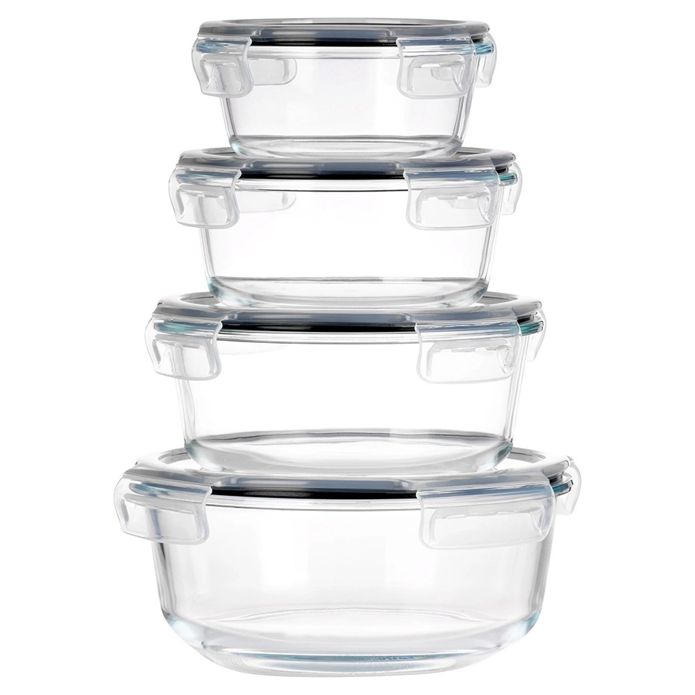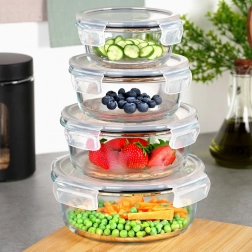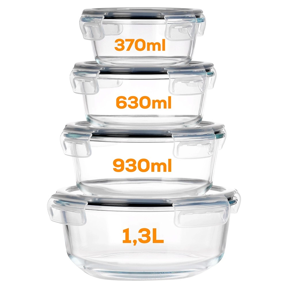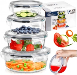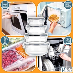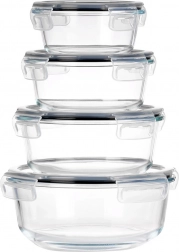 Sada skleněných dóz se čtyřmi bezpečnými klipy a silikonovým těsněním udrží vaše potraviny déle čerstvé a bezpečně uložené. Kvalitní borosilikátové sklo je odolné proti teplotním šokům a neabsorbuje pachy ani barvy. Dózy jsou ideální pro skladování, přenášení i servírování.