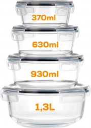 Praktické objemy 370 ml, 630 ml, 930 ml a 1,3 l pokryjí každodenní potřeby a umožní úhledné, prostorově úsporné skladování.