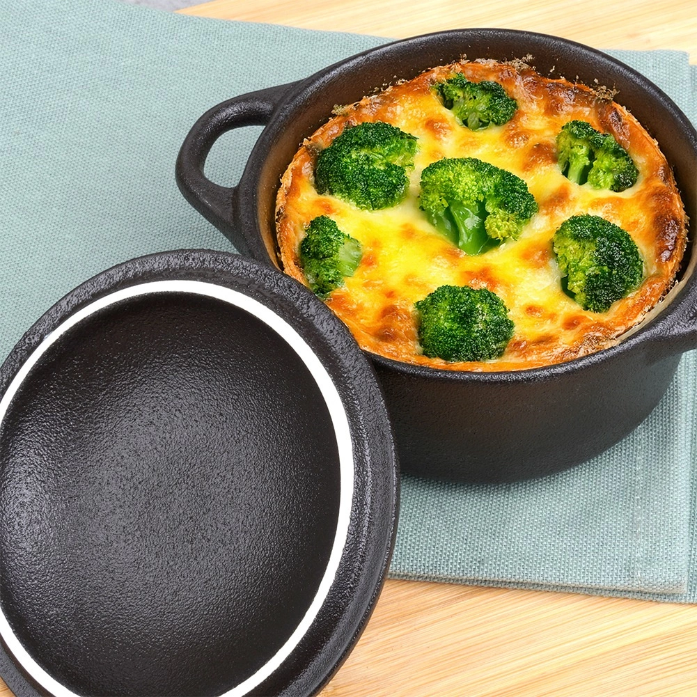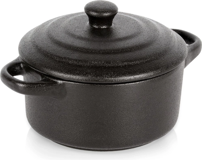 Díky kompaktním rozměrům se hodí pro přípravu individuálních porcí a zároveň skvěle poslouží i k servírování oliv, oříšků nebo zeleniny. Dva praktické úchyty umožní bezpečné přenášení, zatímco poklička chrání pokrmy před vysycháním a ztrátou aroma.