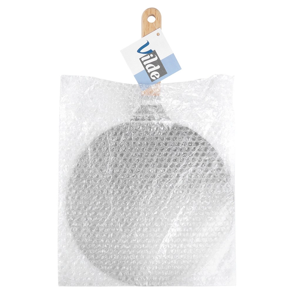 Velký kulatý list z matné nerezové oceli je odolný vůči teplu i kroucení a snadno se zasune pod pizzu či chleba bez trhání těsta.
