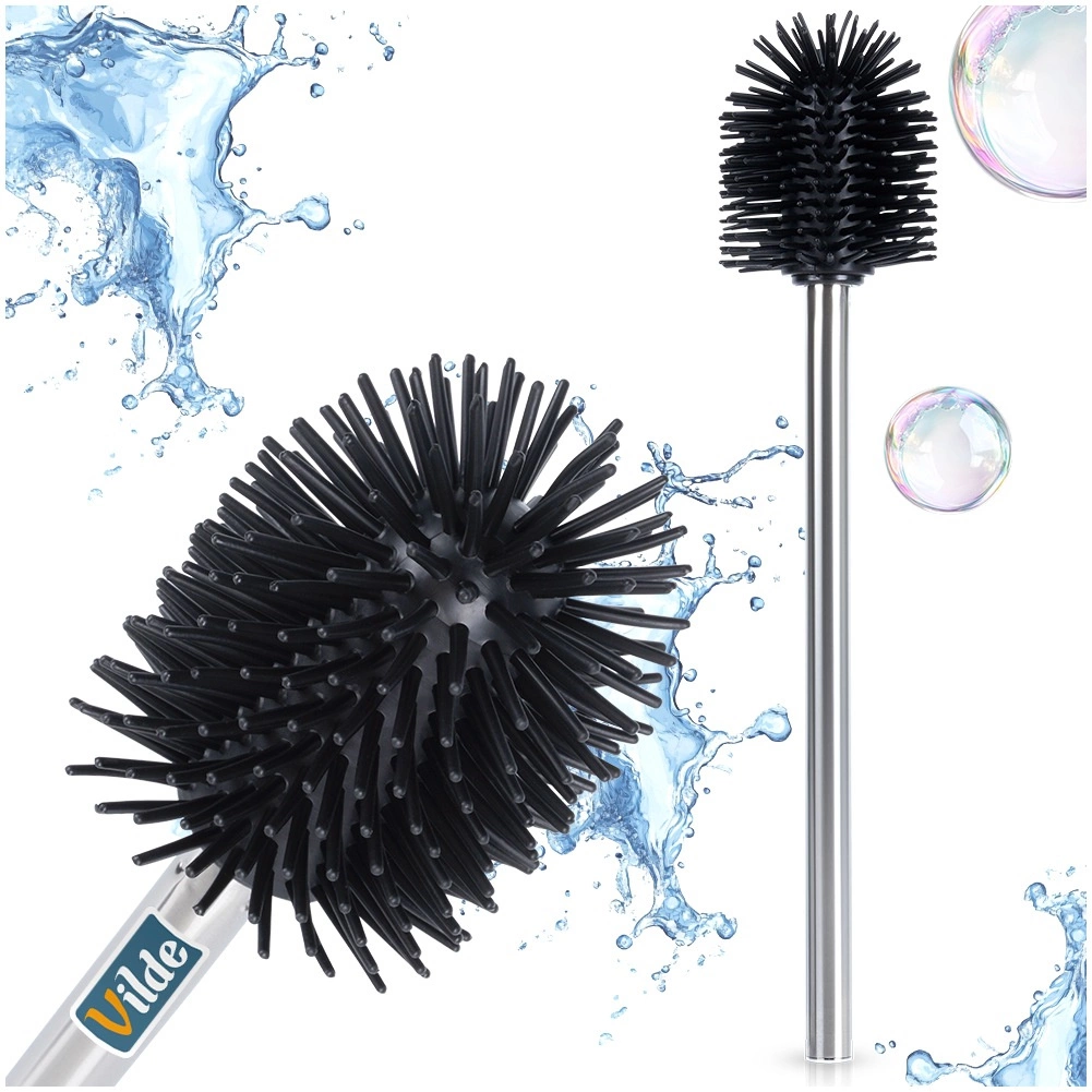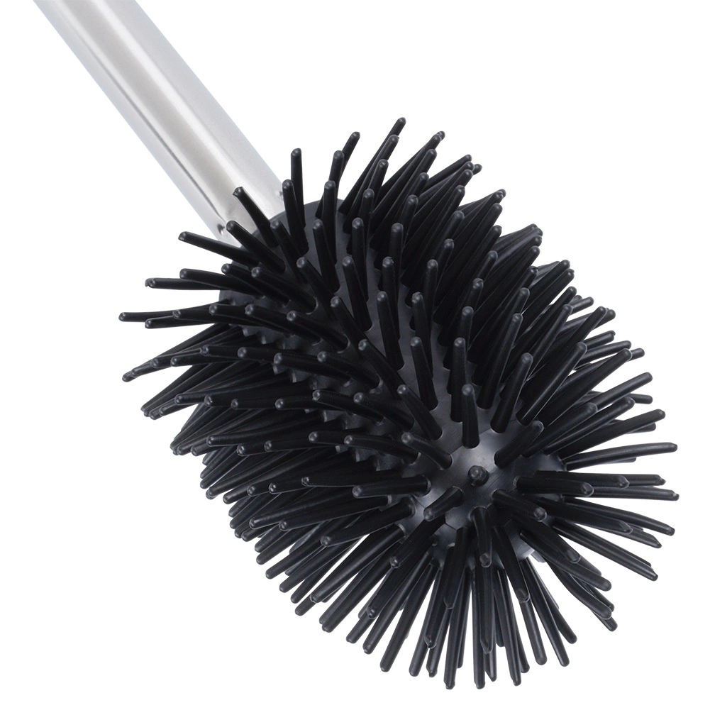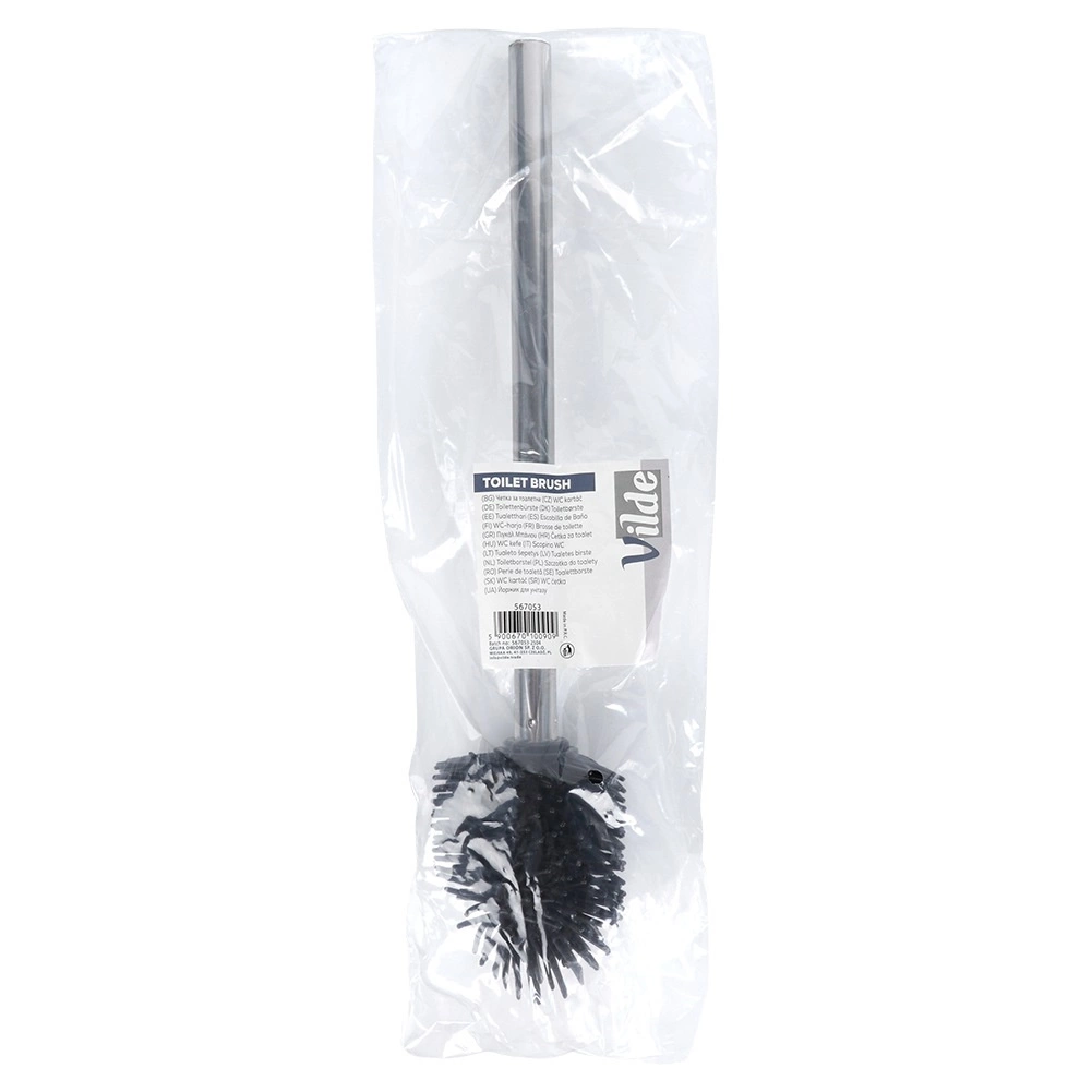 Praktická náhradní silikonová WC štětka s délkou 35 cm a černou hlavicí pro hygienické a účinné čištění toalety. Flexibilní silikonové štětiny se snadno oplachují, neuchycují nečistoty a zajišťují dlouhou životnost. Nerezová rukojeť skvěle padne do ruky a pasuje do většiny standardních stojanů na WC štětky.