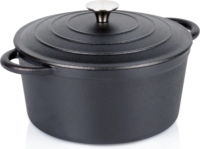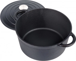 Robustní litinový hrnec s poklicí pro každodenní vaření i pečení. Díky litině skvěle rovnoměrně rozvádí teplo a dlouho drží vysokou teplotu, takže je ideální na guláše, dušení masa, zapečené pokrmy i polévky. Vhodný na všechny typy sporáků včetně indukce i do trouby, s praktickými úchyty a nerezovým knobem na víku.
