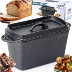 Tato masivní litinová forma s přesně lícující poklicí je ideální pro domácí i profesionální pečení. Obdélníkový tvar pomáhá udržet perfektní tvar toastového chleba, paštik i nákypů. Litinová konstrukce zajišťuje rovnoměrnou distribuci tepla a stabilní teplotu po celou dobu pečení i dušení.
