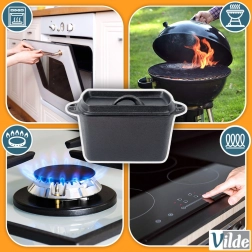 Tip na údržbu: Po každém použití omyjte, důkladně osušte a lehce naolejujte, aby se předešlo korozi (přirozené u litiny). Nádoba nemá žádné nepřilnavé povlaky typu teflon – správnou péčí si udrží dlouhou životnost a skvělé pečicí vlastnosti. Originální produkt značky VILDE z linie CAST LINE.