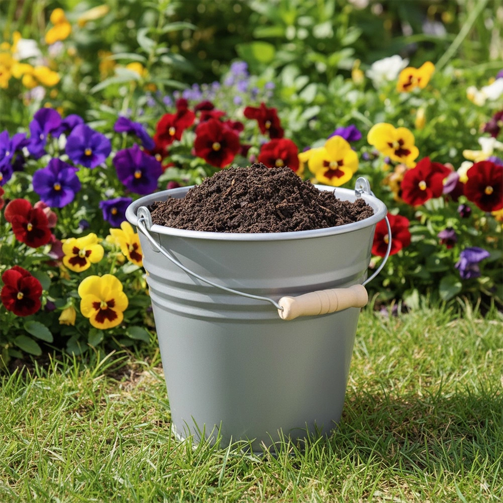 Praktické plastové vědro o objemu 10 l v elegantní šedé barvě se stylizací do ocelového vzhledu. Je lehké a odolné, s pohodlným ergonomickým uchem imitujícím dřevo pro snadné přenášení. Ideální pro úklid, zahradu i dílnu, s vnějšími rozměry 29 × 29,5 × 28,5 cm.