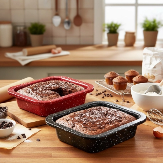 Sada dvou kompaktních forem skvěle zapadne do každé kuchyně – od rychlých dezertů po vybrané slané pokrmy. Díky granitové nepřilnavé vrstvě se těsto nelepí a hotové porce snadno vyjmete bez poškození. Uhlíková ocel výborně vede teplo, takže se můžete spolehnout na rovnoměrné výsledky při každém pečení.