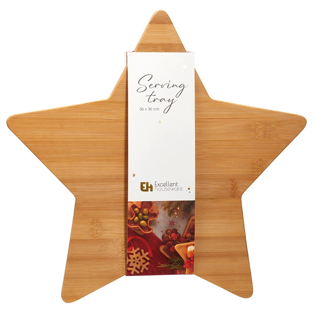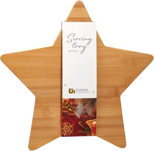Stylové bambusové prkénko ve tvaru hvězdy o rozměrech 36 × 36 cm je ideální pro servírování sýrů, uzenin, ovoce a dezertů. Vyrobené ze udržitelně získaného bambusu, nabízí odolnost proti vlhkosti, snadnou údržbu a efektní design, který rozzáří zimní a sváteční stolování.