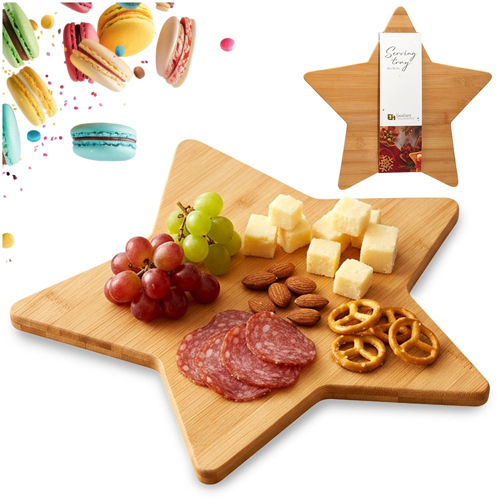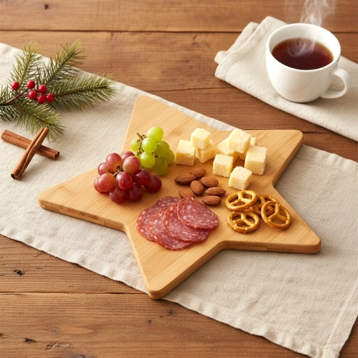 Vneste na stůl sváteční atmosféru s elegantní bambusovou deskou ve tvaru hvězdy. Je skvělá pro každodenní použití i slavnostní příležitosti – od sýrových a uzeninových talířů po ovoce, sušenky či drobné dezerty. Přírodní bambus dodá stolování teplý, moderní vzhled a zároveň je šetrný k nožům.