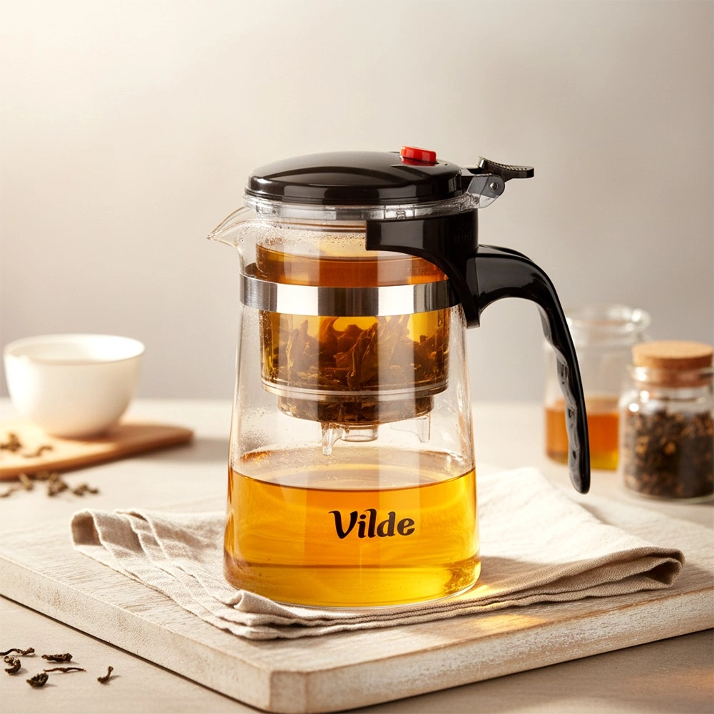 Objevte kompaktní řešení pro dokonalý čaj: skleněná konvice s dvojfázovým spařováním, která maximalizuje chuť a šetří čajové lístky. Lístky se louhují v horní komoře, kde přesně kontrolujete intenzitu esence. Jediným stiskem tlačítka se nálev uvolní do spodního džbánku – bez přelévání a bez nepořádku.