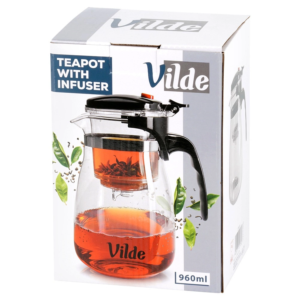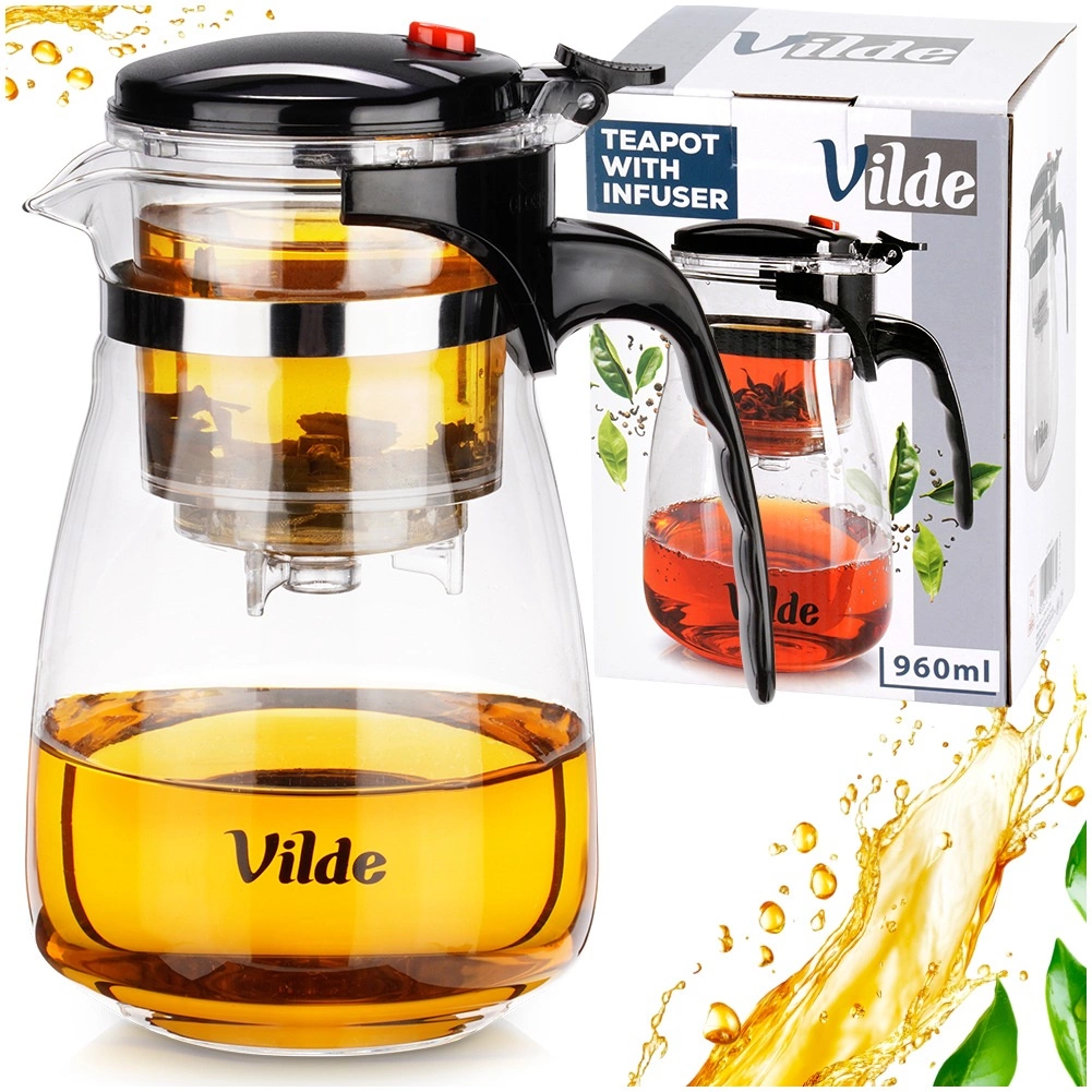 Praktická skleněná konvice s integrovaným vypouštěcím zaparovačem pro sypané čaje, bylinky i ovocné směsi. Borosilikátové sklo odolá teplotám od -20 °C do 120 °C, ovládací tlačítko na víčku uvolní esenci do spodní nádoby a umožní přesné načasování síly nálevu. Objem 960 ml je ideální pro domácí servírování i posezení s přáteli.