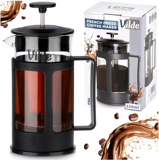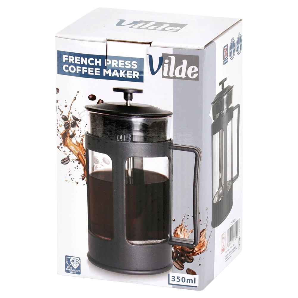 Praktický skleněný french press o objemu 350 ml pro rychlou přípravu kávy, čaje i bylinkových nálevů. Díky borosilikátovému sklu a nerezovému pístu se sítkem získáte čistý, plný nápoj bez lógru. Ergonomická rukojeť a přesný nalévací zobáček zajišťují pohodlné servírování. Vhodný také pro šlehání mléka na cappuccino či latte.