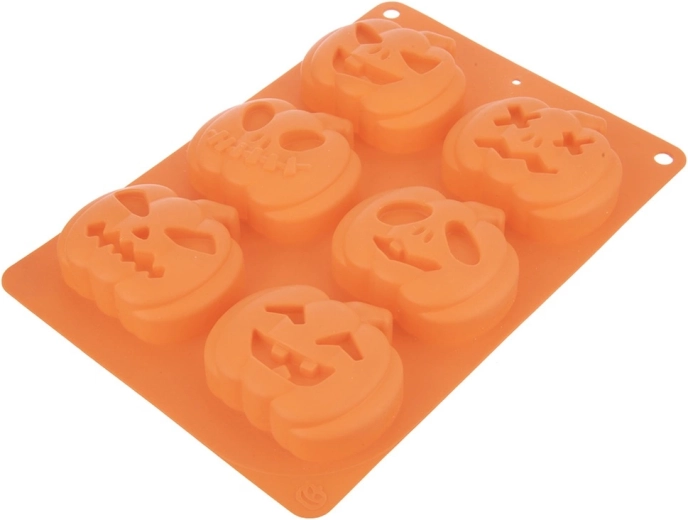 Vytvořte si doma dokonalé halloweenské dobroty. Silikonová forma s motivem dýní vám pomůže připravit efektní muffiny, sušenky či dezerty, které zaujmou vzhledem i chutí. Forma má rozměry 25 × 18 × 3 cm a díky pružnému silikonu se s ní pohodlně pracuje – těsto se nelepí a hotové kousky snadno vyjmete.