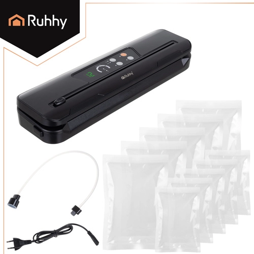 RUHHY vakuová svářečka usnadní domácí balení potravin, sníží plýtvání a prodlouží čerstvost masa, sýrů, zeleniny i marinovaných jídel. Silná vakuová pumpa 80 kPa s výkonem 110 W a průtokem 9 l/min vytváří profesionální, vzduchotěsné sváry během několika sekund. Přehledné indikátory LED a jednoduché ovládání zaručí spolehlivý výsledek pokaždé.