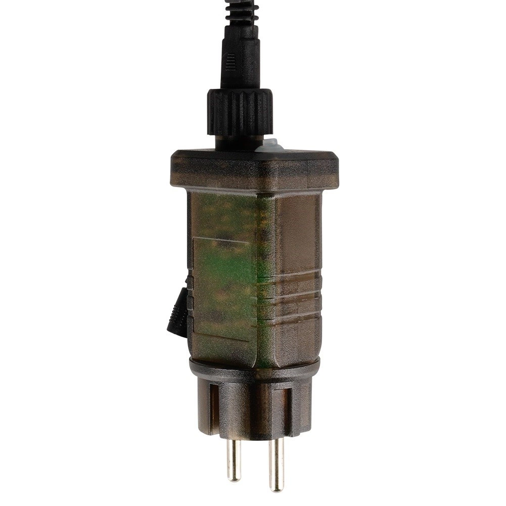 Stromek tvoří 12 světelných pramenů (každý s 10 LED) ukotvených v pevné konstrukci. Základna o průměru 50 cm je z odolného plastu v černé barvě a stožár je kovový – vše navrženo pro stabilitu a dlouhou životnost. Krytí IP44 zajišťuje spolehlivý provoz i ve vlhkém počasí a 5m napájecí kabel poskytuje flexibilní umístění.