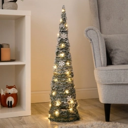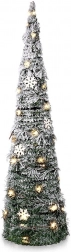 Tato štíhlá svítící choinka v kuželovém tvaru je ideální volbou do obývacího pokoje, předsíně i na komodu či odkládací stolek. Zelené větvičky se sněhovým efektem, jemné teplé světlo a dekorativní vločky vytvoří příjemné sváteční světlo i v menších prostorech. Baterie zajistí volné umístění bez kabelů.
