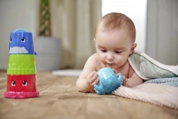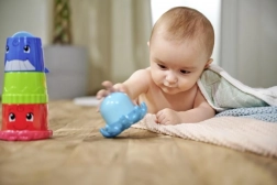 Hra s vodou rozvíjí motoriku, koordinaci a učení příčiny a následku během každodenního koupání.