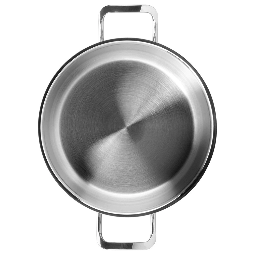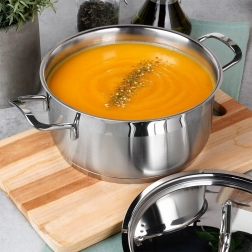 Speciální vícevrstvé akutermické dno výborně akumuluje a rozvádí teplo, takže vaříte energeticky úsporně a s menším množstvím tuku – bez zbytečné ztráty vitamínů a minerálů. Pohodlné úchyty usnadní manipulaci a přiložená nerezová poklice podpoří rychlé a rovnoměrné vaření.