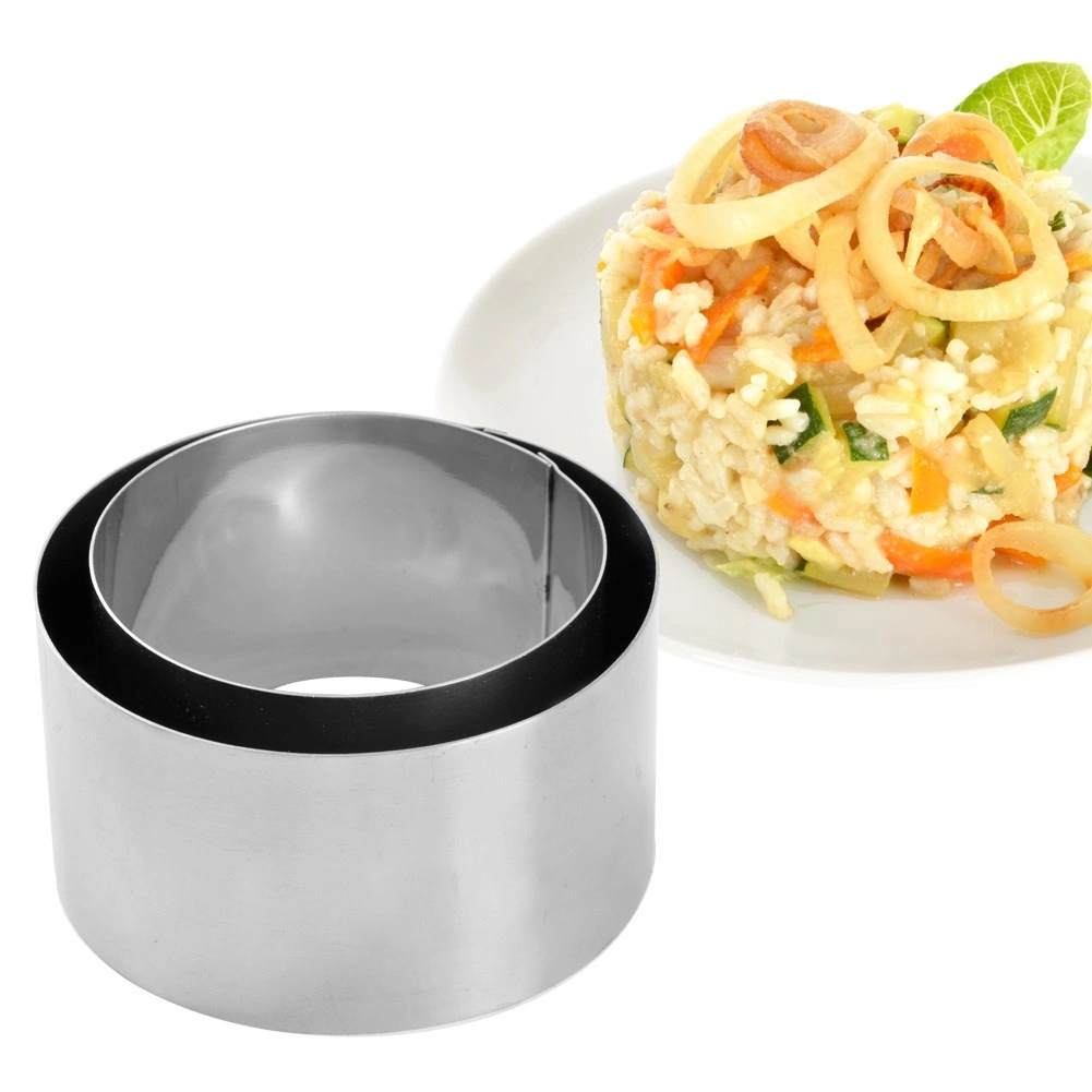 Sada dvou nerezových kroužků je ideální pro přípravu dortíků, tartaletek, vrstvených salátů, rýže, brambor či gelé. Odolná nerezová ocel zaručuje dlouhou životnost, hygienu a stabilní tvar. Díky dvěma velikostem vytvoříte efektní porcování a plating jako v profesionální kuchyni.