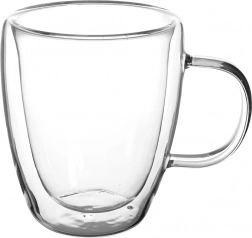 Elegantní termo sklenice s dvojitou stěnou o objemu 300 ml udrží vaše nápoje déle v požadované teplotě. Díky borosilikátovému sklu je lehké, odolné a zároveň tepelně izolační. Skvělé pro latte, kávu i čaj, s pohodlným ucho uchopením a efektním vzhledem servírování.