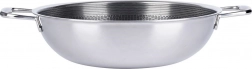 Nýtované boční úchyty poskytují stabilní úchop. Povrch se snadno čistí ručně i v myčce, odolává zbytkům a skvrnám po vaření.