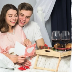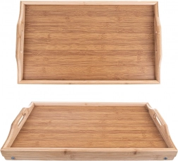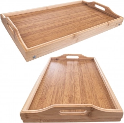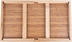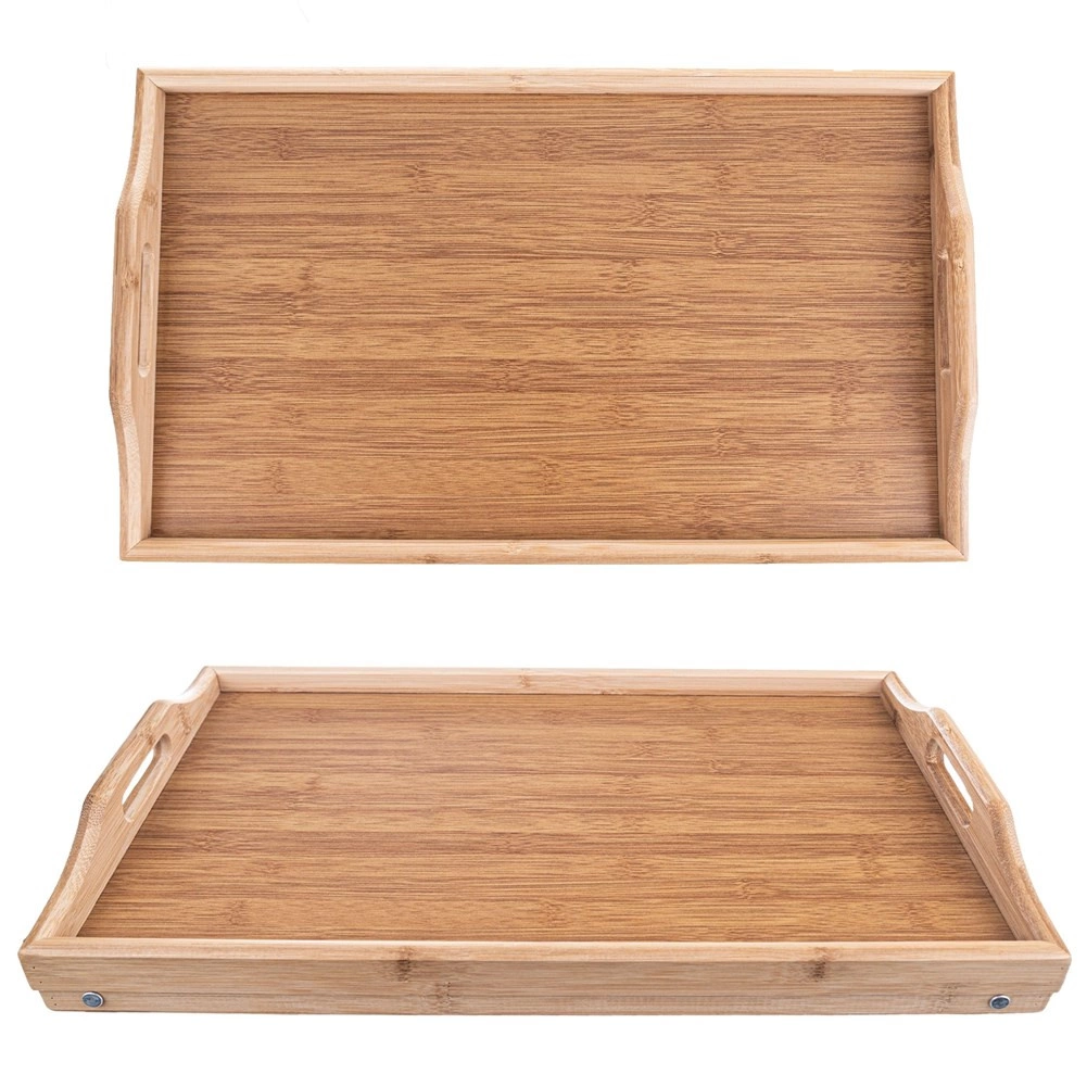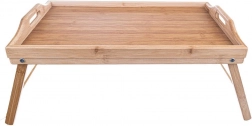 Praktický snídaňový stolek z bambusového dřeva pro pohodlné servírování v posteli nebo na gauči. Je lehký, odolný vůči vlhkosti, má skládací nohy a poslouží také jako podložka pod tablet či notebook.