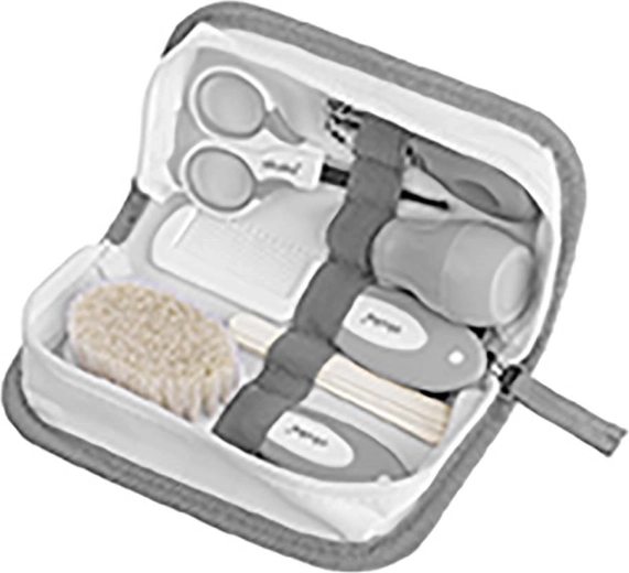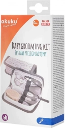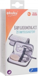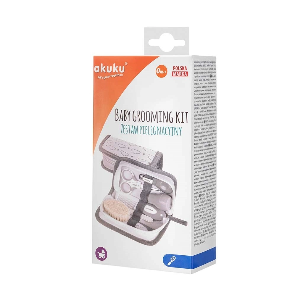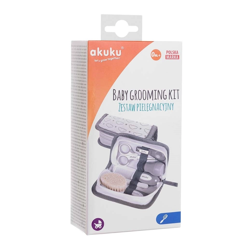 Kompletní sada Akuku Hooligans usnadní každodenní péči o vaše miminko od prvních dnů. Všechny nástroje jsou navrženy s ohledem na bezpečnost a pohodlí – nůžky s tenkými kovovými čepelemi a zaoblenými hroty pro šetrné stříhání, kleštičky a pilník pro hladké zakončení nehtů bez rizika poškrábání. Kartáč s měkkými přírodními štětinami jemně pečuje o citlivou pokožku hlavy, zatímco hřeben s protiskluzovou rukojetí zajišťuje jistý úchop.