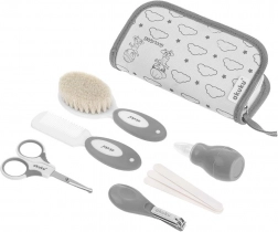 Nosní odsávačka s měkkou špičkou je navržena pro šetrné uvolnění dýchacích cest. Celá manikúra je uložena v elegantním a praktickém textilním pouzdře, díky kterému máte vše přehledně po ruce doma i na cestách. Sada je vhodná od narození a neobsahuje BPA.