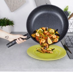 Granitová pánev z řady Grande spojuje masivní hliníkové tělo s odolnou nepřilnavou vrstvou Pfluon Granit pro zdravější vaření bez připékání. Efektivní vedení tepla zkracuje dobu přípravy a šetří energii, zatímco ergonomická rukojeť zůstává chladná a pohodlně se drží.