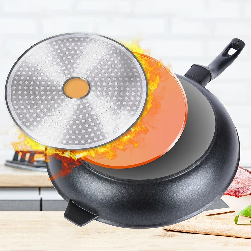 Vícevrstvé dno s indukční deskou zajišťuje efektivní přenos tepla a kompatibilitu s plynem, elektřinou, sklokeramikou, halogenem i indukcí.