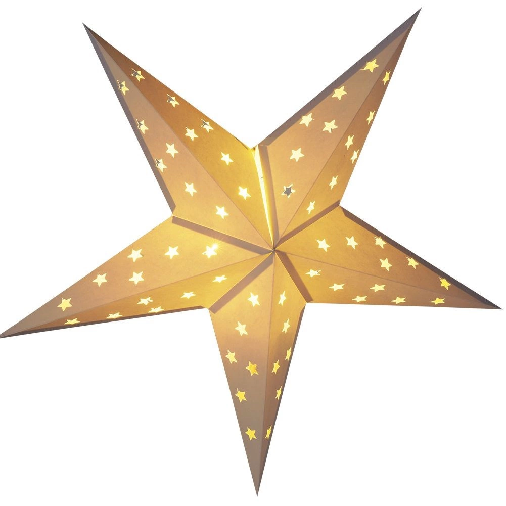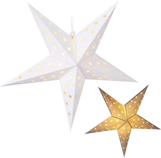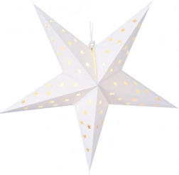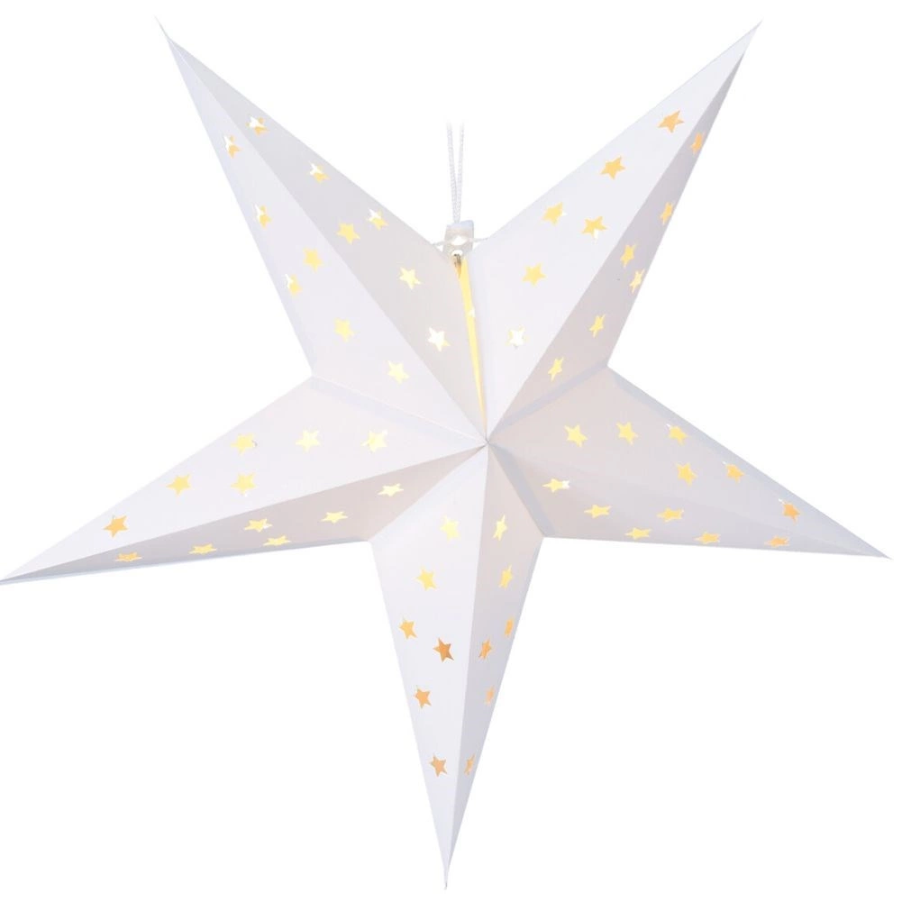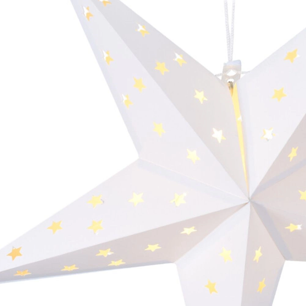- Design: 3D papírová hvězda v bílé barvě s dekorativním průsvitem