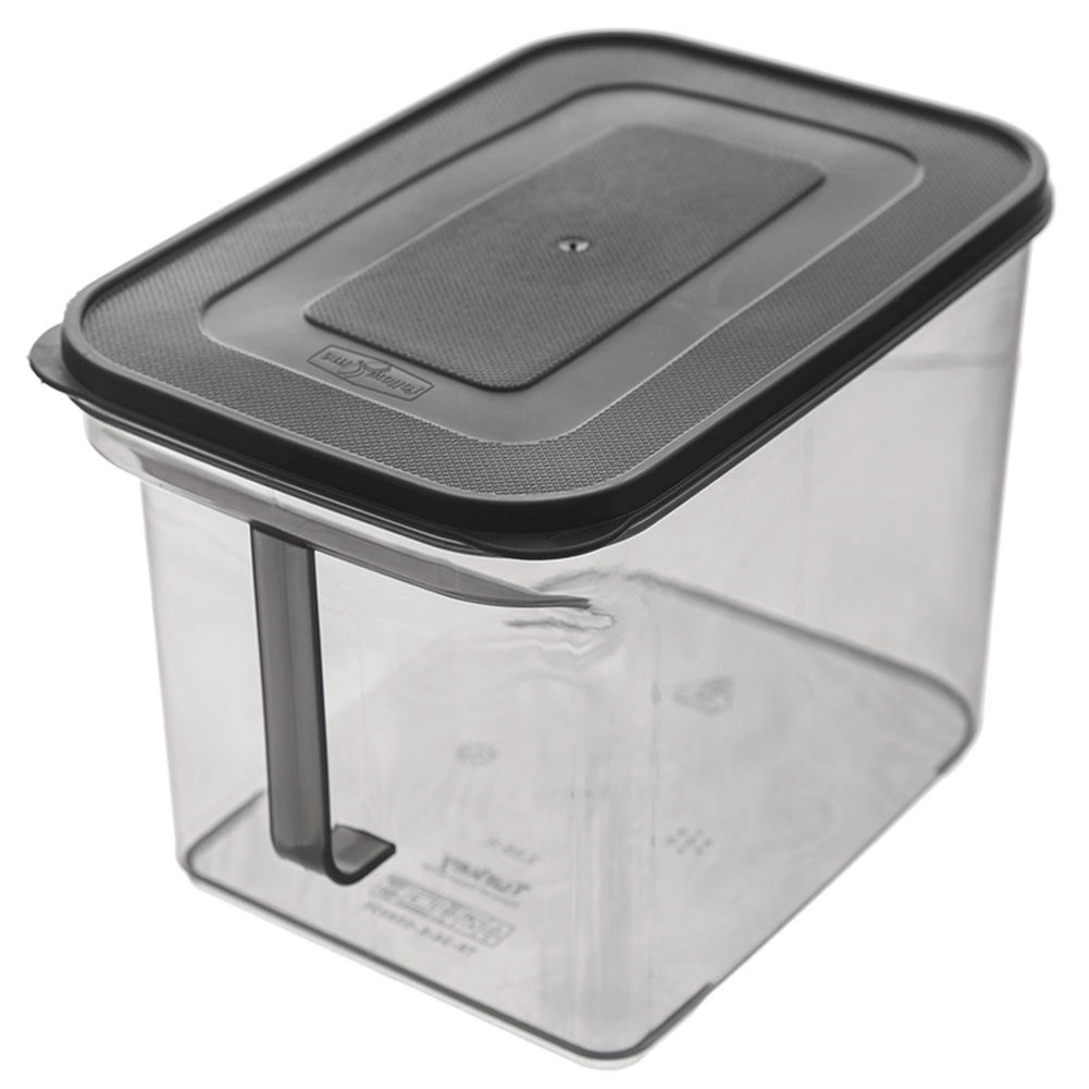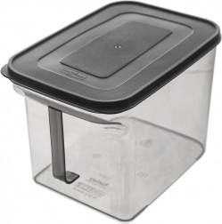Udržujte pořádek v kuchyni s prostorným zásobníkem, který ochrání vaše potraviny před vlhkostí a cizími pachy. Těsnící víko brání rozsypání i navlhnutí a průhledné stěny usnadní kontrolu stavu zásob. Boční ergonomická rukojeť zajišťuje pohodlné manipulování i při plném naplnění.