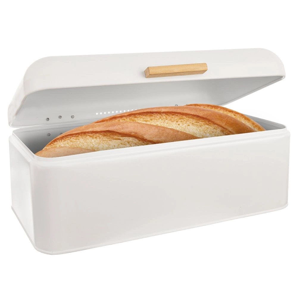 Kovový chlebník WHITELINE v bílé barvě je stylový a funkční doplněk pro každou kuchyni. Díky pevnému provedení z kovu a kvalitnímu zpracování zůstane vaše pečivo déle měkké a křupavé. Víko na pantech se otevírá shora pomocí pohodlného bambusového madla, které usnadňuje každodenní používání.