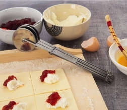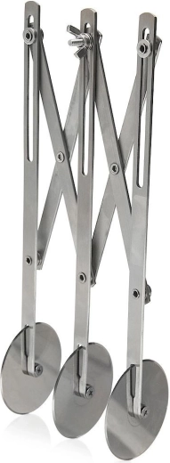 Praktický trojitý kráječ na těsto a těstoviny z kvalitní nerezové oceli pro rychlé a precizní krájení. Díky nastavitelnému rozestupu kol od 1,3 do 25 cm snadno připravíte rovnoměrné proužky na sušenky, koláče i těsto na domácí těstoviny. Hladké ostré kotouče se nelepí na těsto a snadná údržba v myčce šetří čas.
