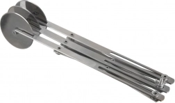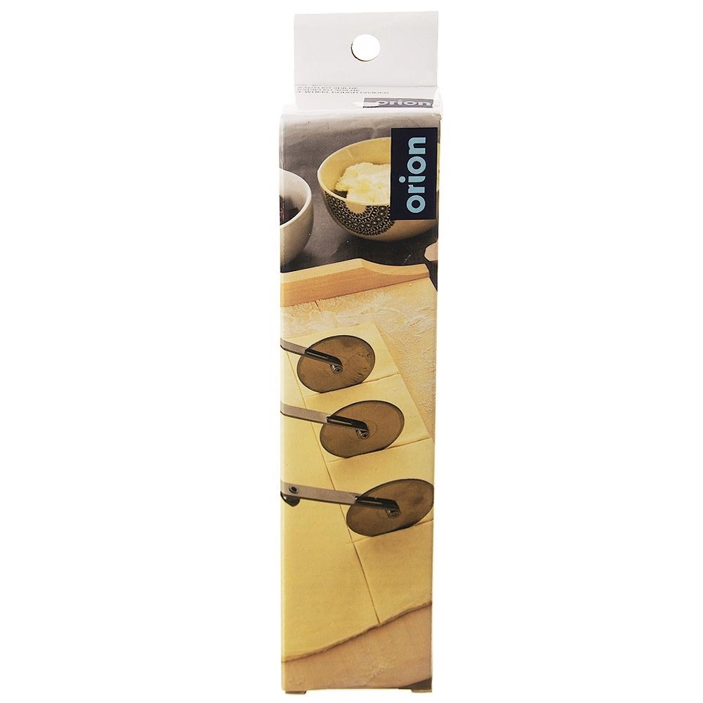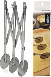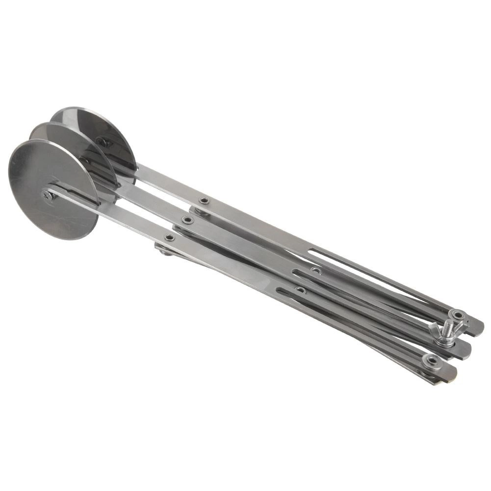 Trojitý nůžkový kráječ z nerezové oceli je spolehlivý pomocník pro domácí i profesionální pečení. Tři jednostranné hladké kotouče o průměru 5,5 cm zajišťují čisté řezy bez trhání a lepení těsta. Dlouhá rukojeť poskytuje jistý úchop a pohodlné vedení.