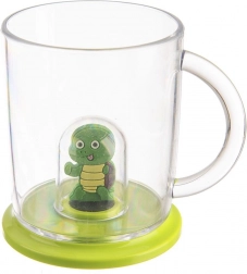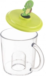 Praktický dětský hrnek s odnímatelnou figurkou želvy na víčku potěší každého malého milovníka zvířat. Poklička chrání nápoj před nečistotami a hmyzem a lze ji použít také jako podložku. Figurka poslouží i ke hře a na víčku vytváří efekt „želvičky v nápoji“. Hrnek je vhodný na čaj, vodu, džus i kakao.