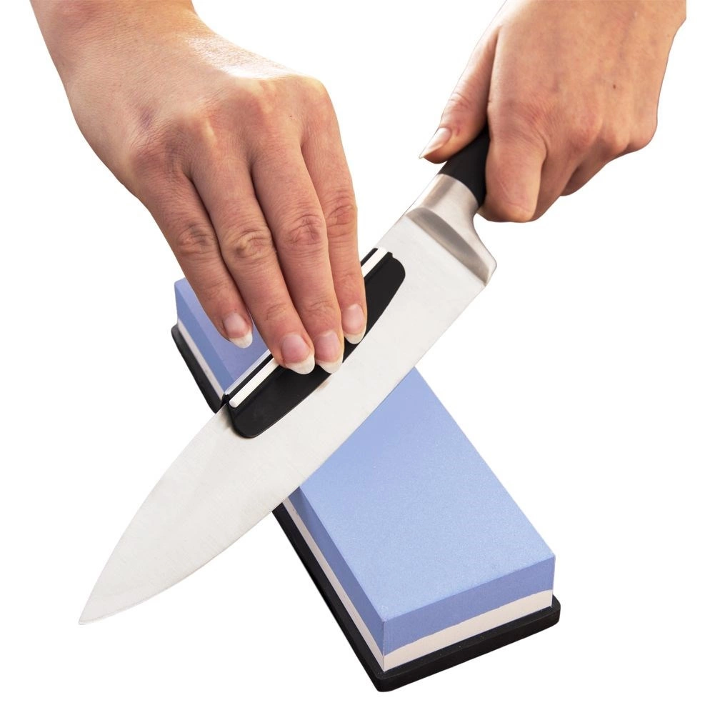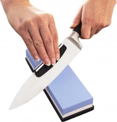 Set je vhodný pro kuchyňské nože, nůžky, dláta i některé zahradní nástroje. Před použitím stačí kámen na cca 10 minut namočit a během broušení jej průběžně vlhčit. Materiál z korundu je odolný proti opotřebení a korozi, takže poskytuje dlouhou životnost a stabilní výkon. Není vhodný pro zubaté a keramické nože.