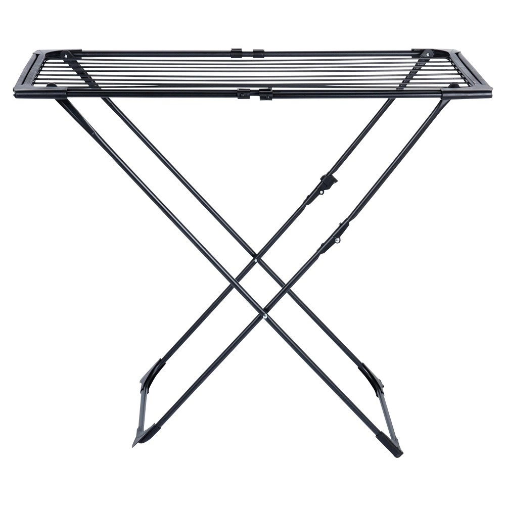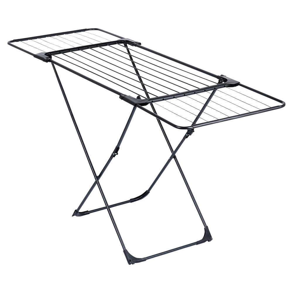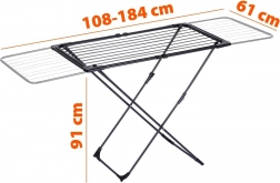 Praktický sušák na prádlo s teleskopickým rozšířením z 108 až na 182 cm nabídne až 16,8 m sušící plochy a nosnost 16 kg. Odolná kovová konstrukce s práškovým lakem v elegantní černé barvě je stabilní, vhodná do interiéru i exteriéru. Díky skládacímu mechanismu a kolečkům pro snadné přemístění se stane nepostradatelným pomocníkem v každé domácnosti.