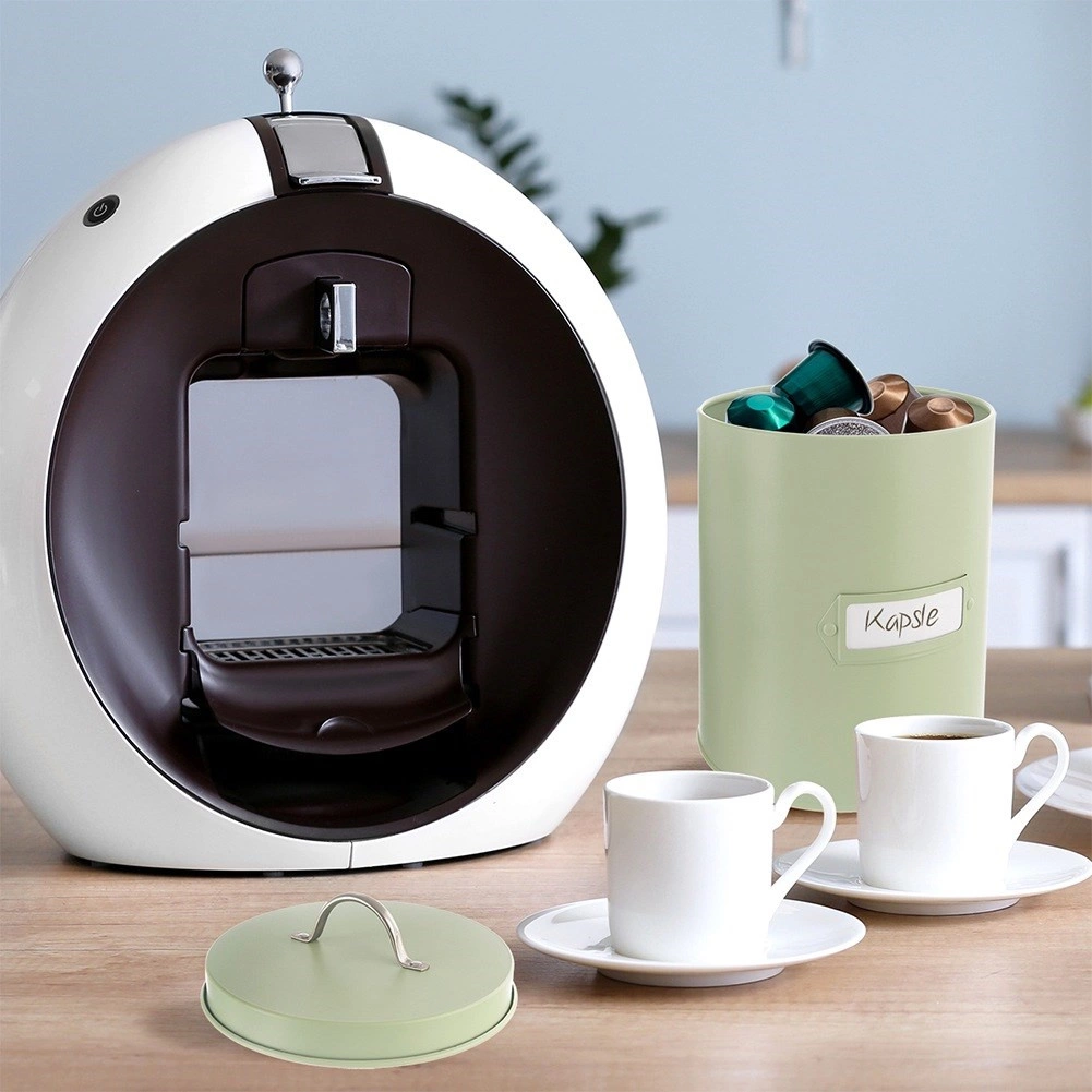 Udržte kuchyň přehlednou a potraviny déle čerstvé. Kovová dóza GREENISH v pastelově zeleném odstínu má objem 3,3 l a rozměry 16 × 21,5 cm. Odnímatelné víčko s pohodlným kovovým úchytem umožňuje snadný přístup, zatímco držák na štítek na přední straně usnadní rychlou orientaci v obsahu.