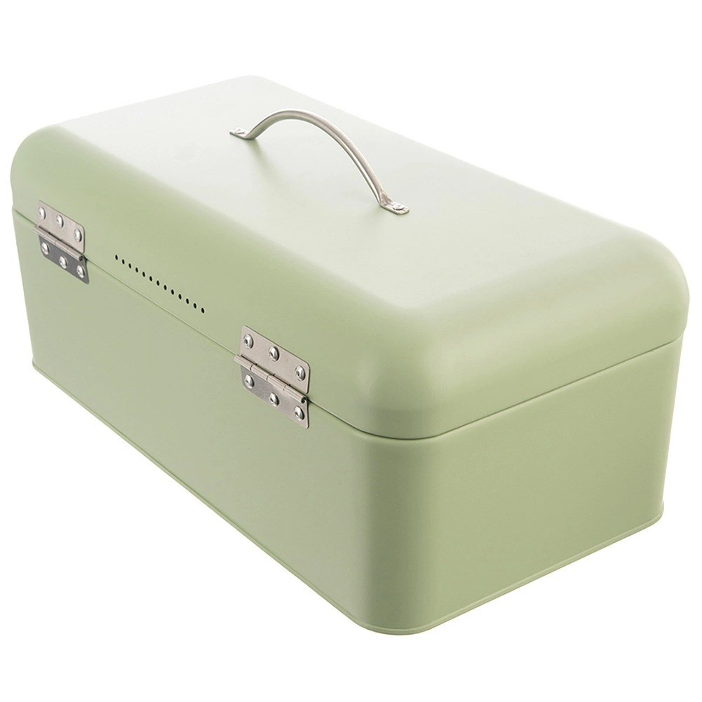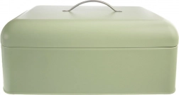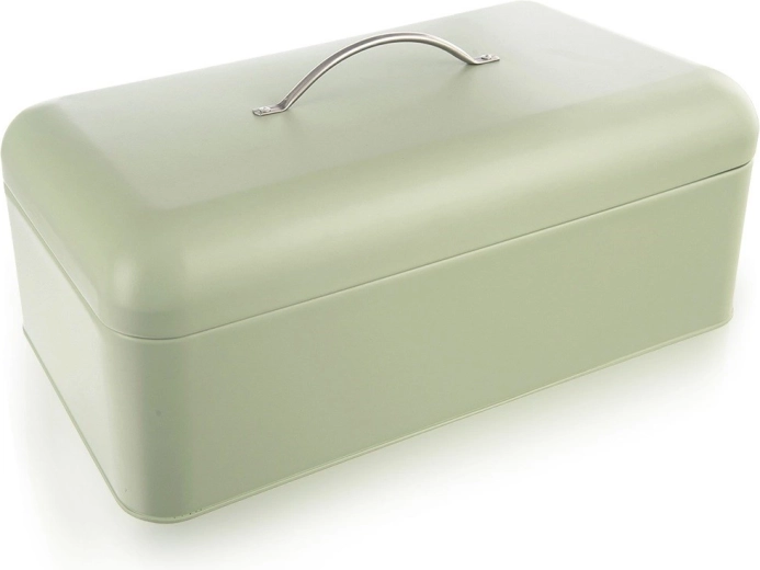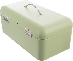 Matná mátově zelená povrchová úprava, zaoblené rohy a stříbrné madlo dodávají chlebníku elegantní vzhled a dlouhou životnost.