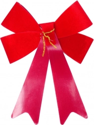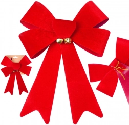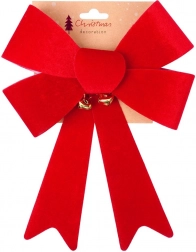 Elegantní vánoční mašle o rozměrech 22 × 32 cm z měkkého veluru v sytě červené barvě se dvěma zlatými zvonečky. Ideální na stromek, věnce, dveře i zábradlí. Díky lehké konstrukci a drátku nabízí snadné upevnění, univerzální použití a dlouhou životnost s možností opakovaného použití.
