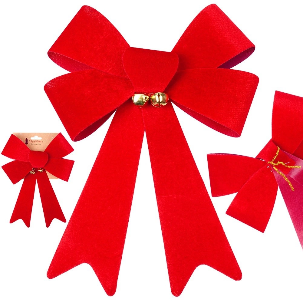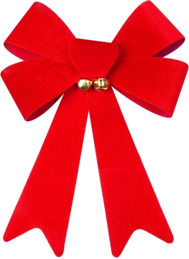 Tato velká vánoční mašle z veluru okamžitě dodá vašemu domovu sváteční atmosféru. Hebký povrch, sytě červený odstín a zlaté zvonečky vytvářejí efektní akcent pro tradiční i moderní dekor.