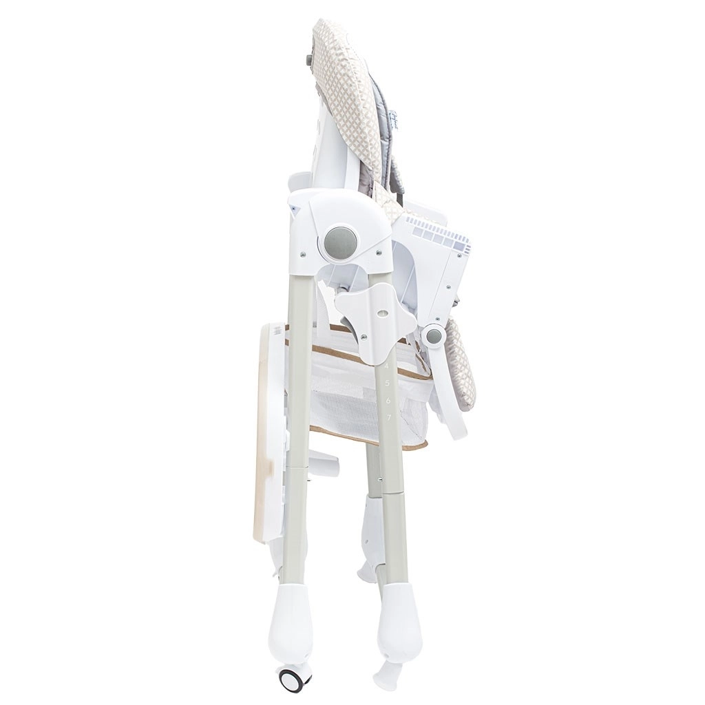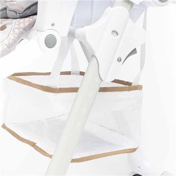 Praktické detaily, jako je dvojitý pultík se snadným složením, prostorný koš pod sedadlem a novorozenecká vložka, dělají ze židličky skvělou volbu pro moderní domácnost. Atraktivní vzor a příjemná latte barva ladí s většinou interiérů.