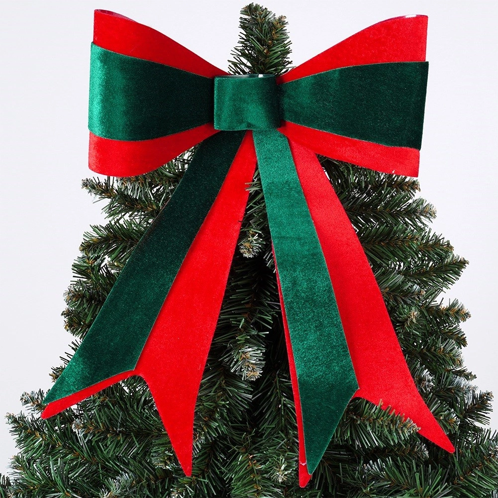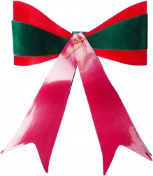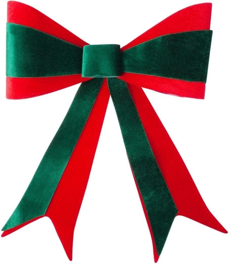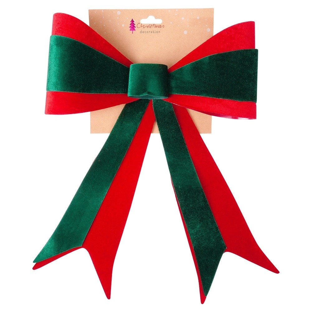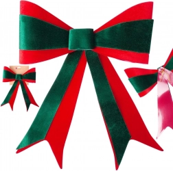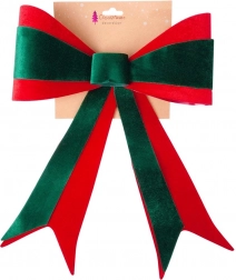 Elegantní vánoční mašle o rozměrech 33 × 46 cm s měkkým sametovým povrchem v červené a zelené. Ideální pro stromek, věnce, dveře i zábradlí, s jednoduchým upevněním na drátek a dlouhou životností pro opakované použití.