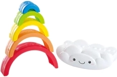 Tato roztomilá skládačka v podobě duhy s mráčkem je ideální první hračka pro rozvoj dovedností. Díky pestrým barvám děti přirozeně přitahuje a motivuje je k objevování tvarů a velikostí. Při skládání oblouků si procvičují úchop, koordinaci ruka–oko a trpělivost.