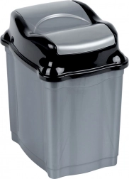 Praktický koš na drobný odpad s odnímatelným sklopným víkem pro pohodlné a hygienické vyhazování. Kompaktní rozměry umožní umístění na podlahu, na pracovní desku nebo ukrytí do skříňky. Šedé tělo s lesklým černým víkem působí elegantně a zároveň se snadno udržuje.