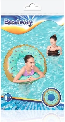 Užijte si léto s nafukovacím kruhem BESTWAY ve tvaru donut s tyrkysovou polevou a barevnými posypkami. Ideální pro děti od 10 let i dospělé, z odolného PVC, snadno se nafukuje i vyfukuje a je skvělý na bazén, jezero i moře. Díky bezpečnostnímu ventilu drží vzduch a poskytne pohodlný odpočinek na vodě.