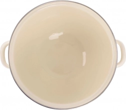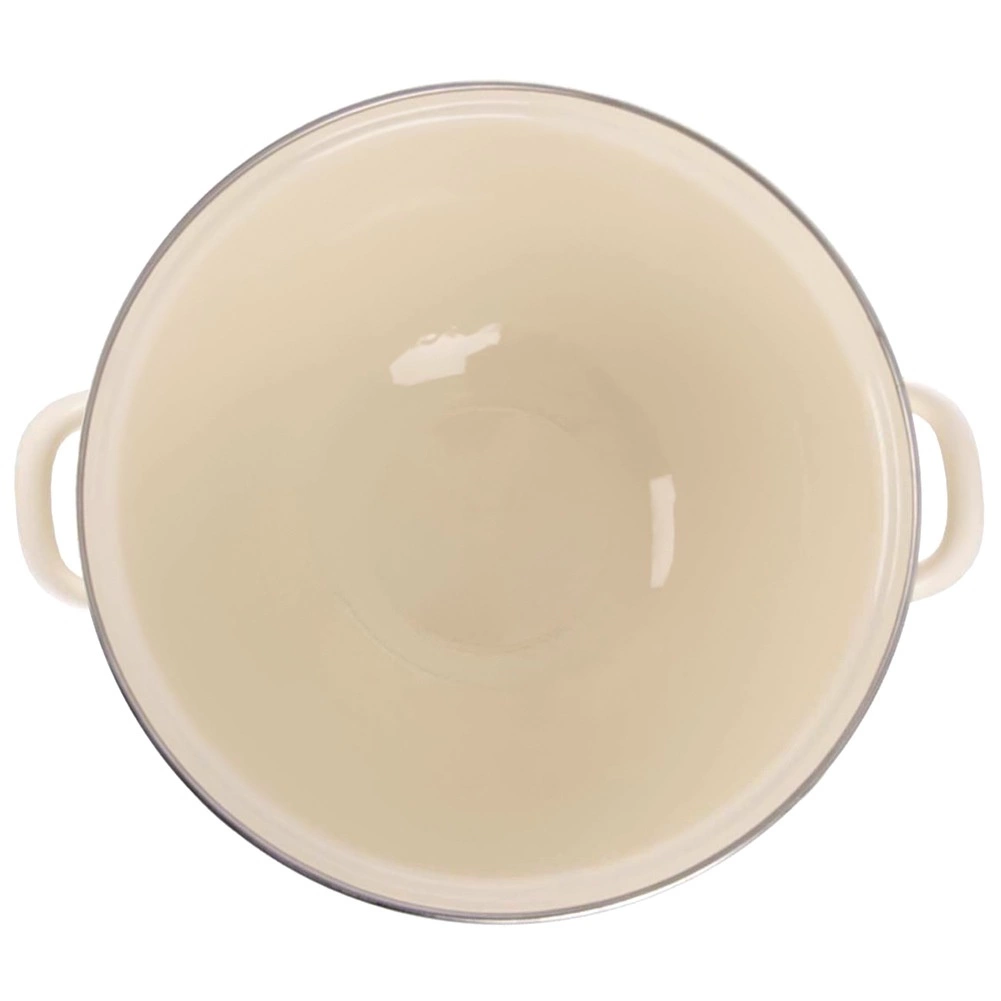 Tato stylová retro emajlovaná miska TONCA je skvělým pomocníkem do každé kuchyně. Vyrobena z kvalitní smaltované oceli v krémové barvě s decentním motivem srdcí a s nerezovým lemem pro vyšší odolnost. Objem 5 l poskytuje dostatek prostoru pro přípravu větších porcí, salátů či těsta. Díky dvěma pevným úchytům se pohodlně přenáší a můžete v ní i podávat pokrmy přímo na stůl.