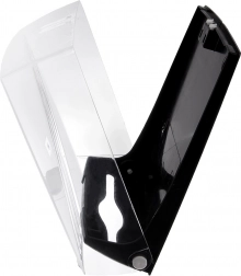 Čelní díl v průhledném matném provedení usnadňuje kontrolu zásoby, zadní a spodní část v černé barvě působí elegantně a je nenáročná na údržbu. Součástí balení je klíč k uzamykání a montážní příslušenství pro rychlou instalaci na stěnu.