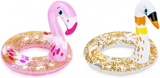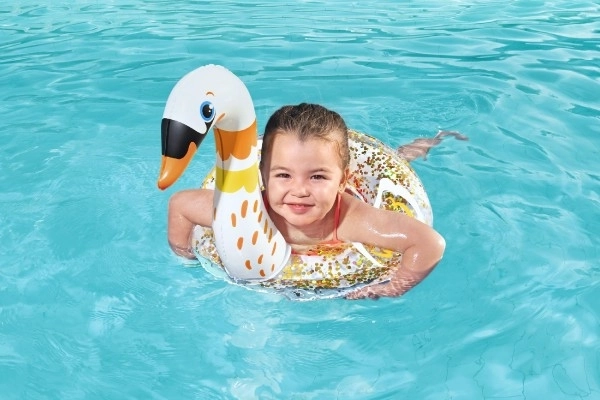 Nafukovací kruh s motivem labutě zaujme třpytivým designem a živými barvami, které děti milují. Je vyroben z odolného PVC a navržen tak, aby vydržel opakované nafukování a vyfukování. Praktický bezpečnostní ventil brání nechtěnému úniku vzduchu.