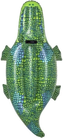 Nafukovací hračka ve tvaru krokodýla, ideální pro zábavu na vodě, zaujme realistickým designem a zelenou barvou. Vyroben z odolného vinylu, poskytuje stabilitu a bezpečnost s maximálním zatížením 45 kg.